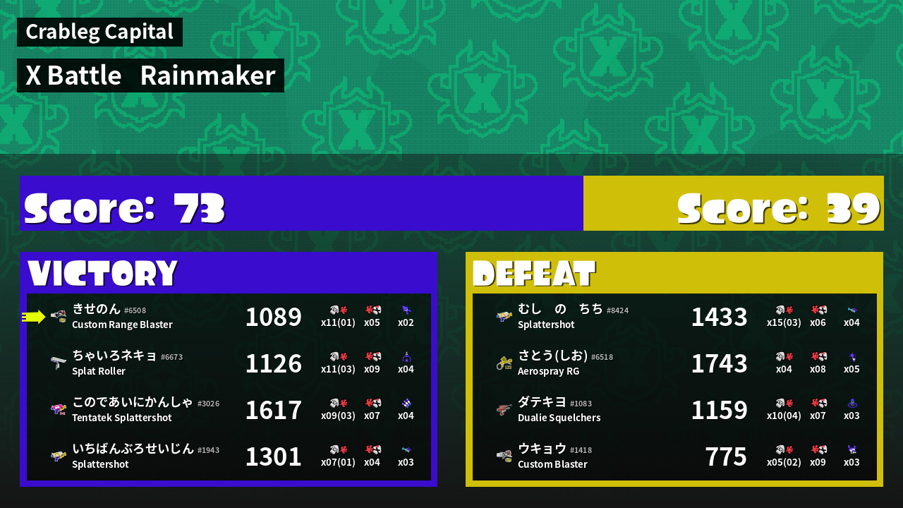 | Mode | Rainmaker - X Battle | ||