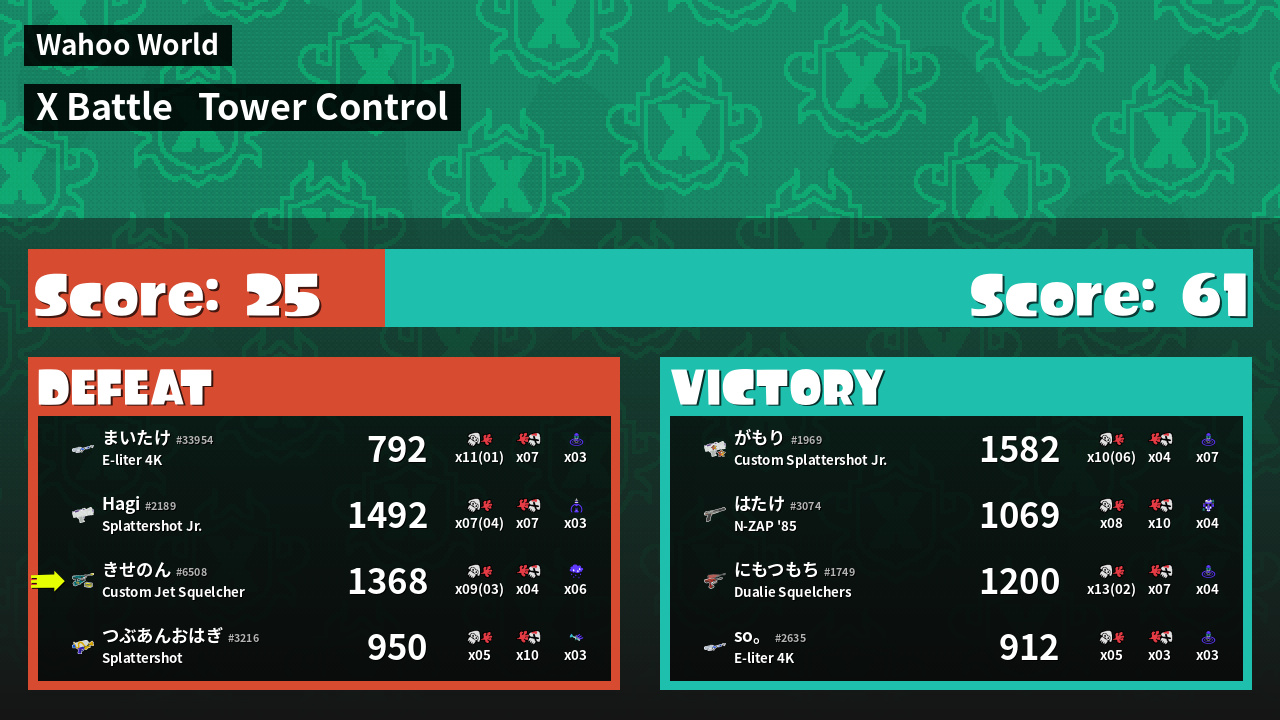 | Mode | Tower Control - X Battle | ||