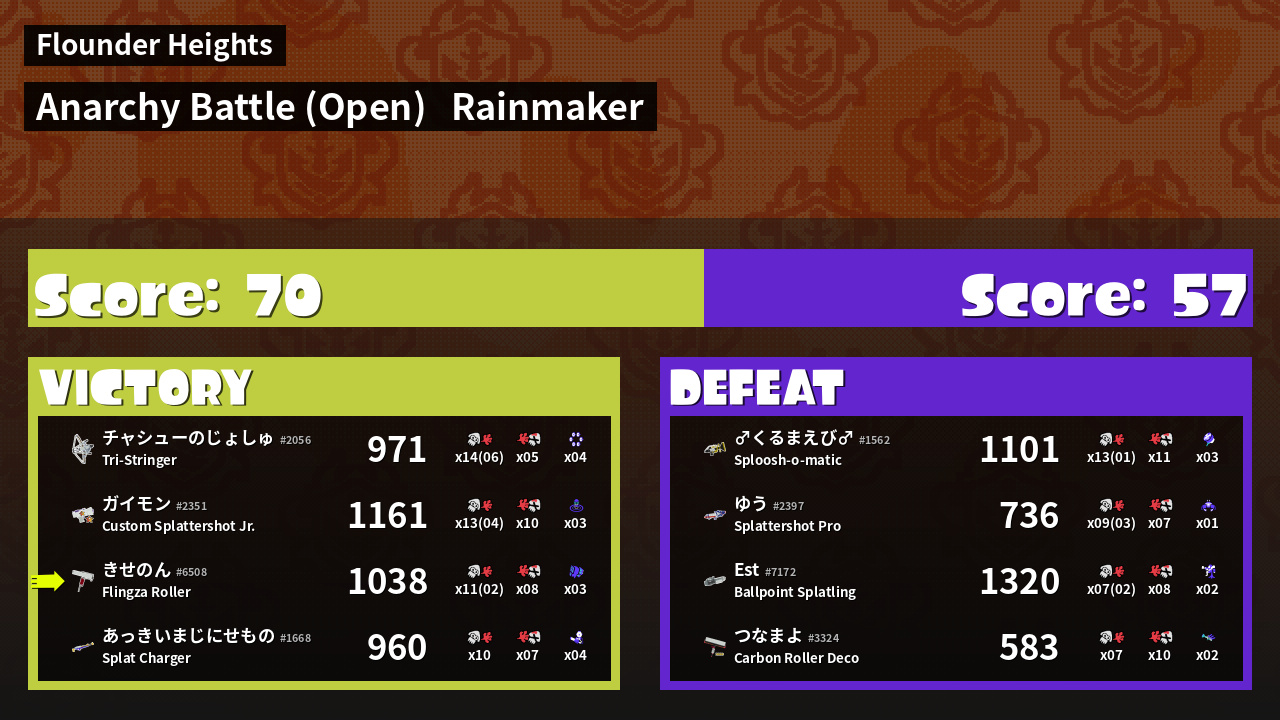 Results of きせのん's Battle