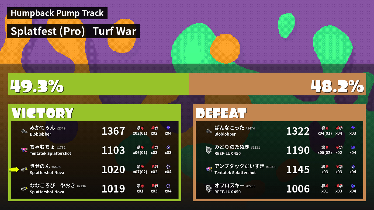 | Medals | #1 Overall Splatter #1 Enemy Splatter #1 Splat Assister | ||