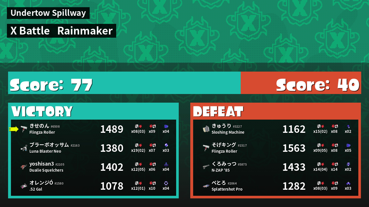 | Weapon | Flingza Roller ( Ink Mine / Tenta Missiles) | ||