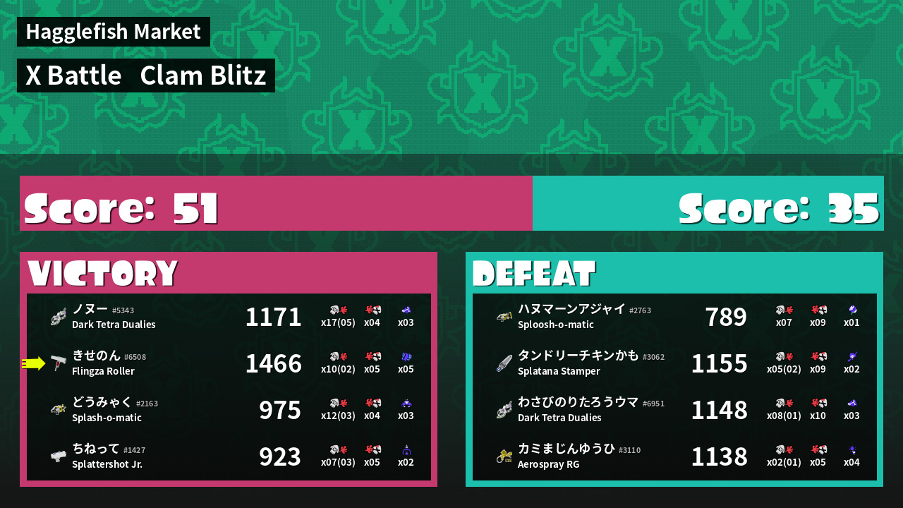| Mode | Clam Blitz - X Battle | ||
