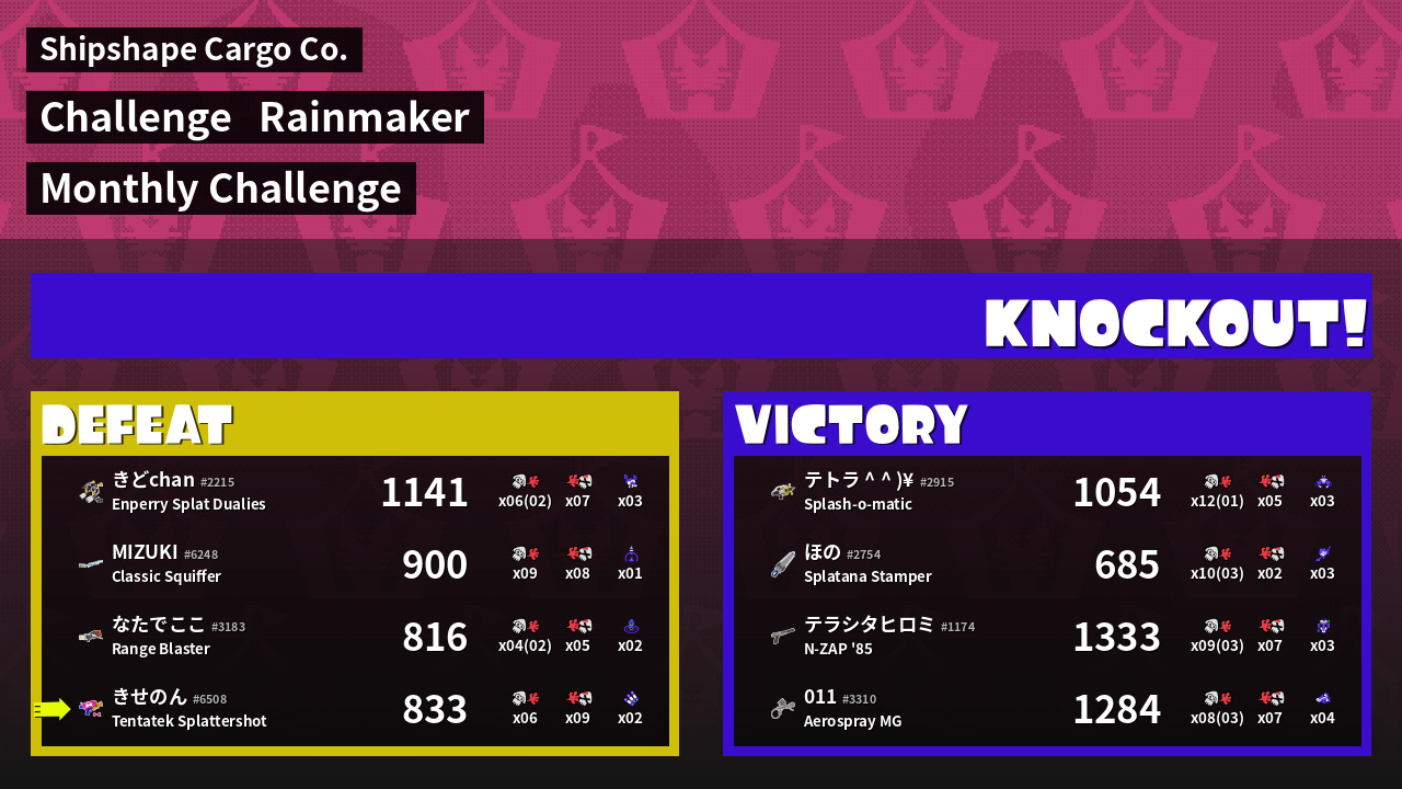 | Weapon | Tentatek Splattershot ( Splat Bomb / Triple Inkstrike) | ||