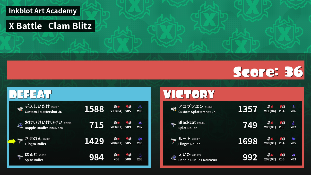 | Weapon | Flingza Roller ( Ink Mine / Tenta Missiles) | ||