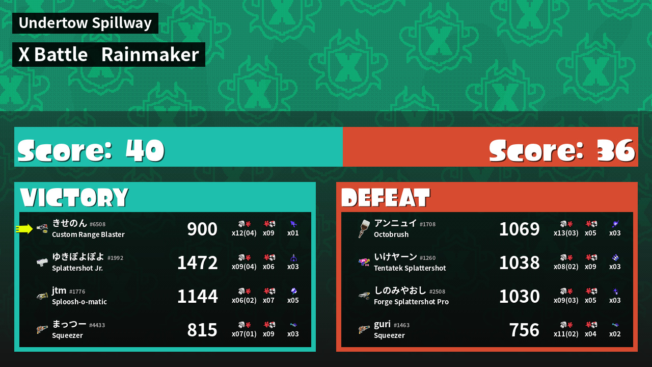| Medals | #1 Overall Splatter #1 Enemy Splatter #1 Splat Assister | ||