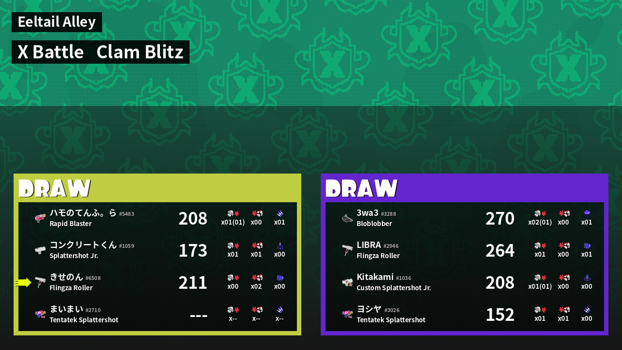 | Mode | Clam Blitz - X Battle | ||
