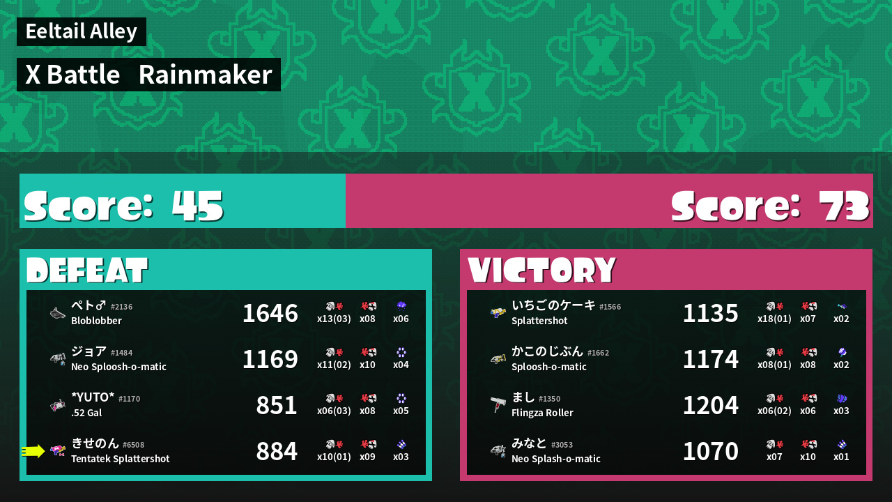 | Medals | #1 Rainmaker Stopper #1 Ink Consumer #2 Enemy Splatter | ||