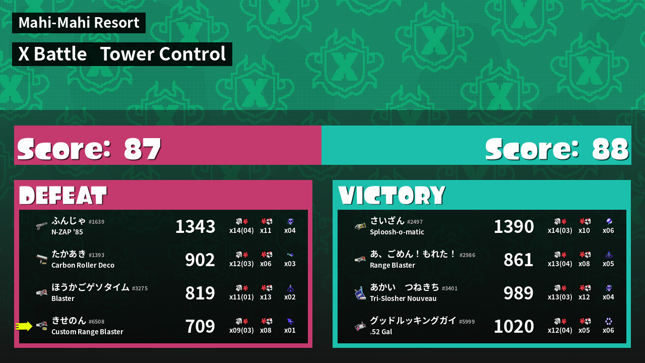 | Mode | Tower Control - X Battle | ||