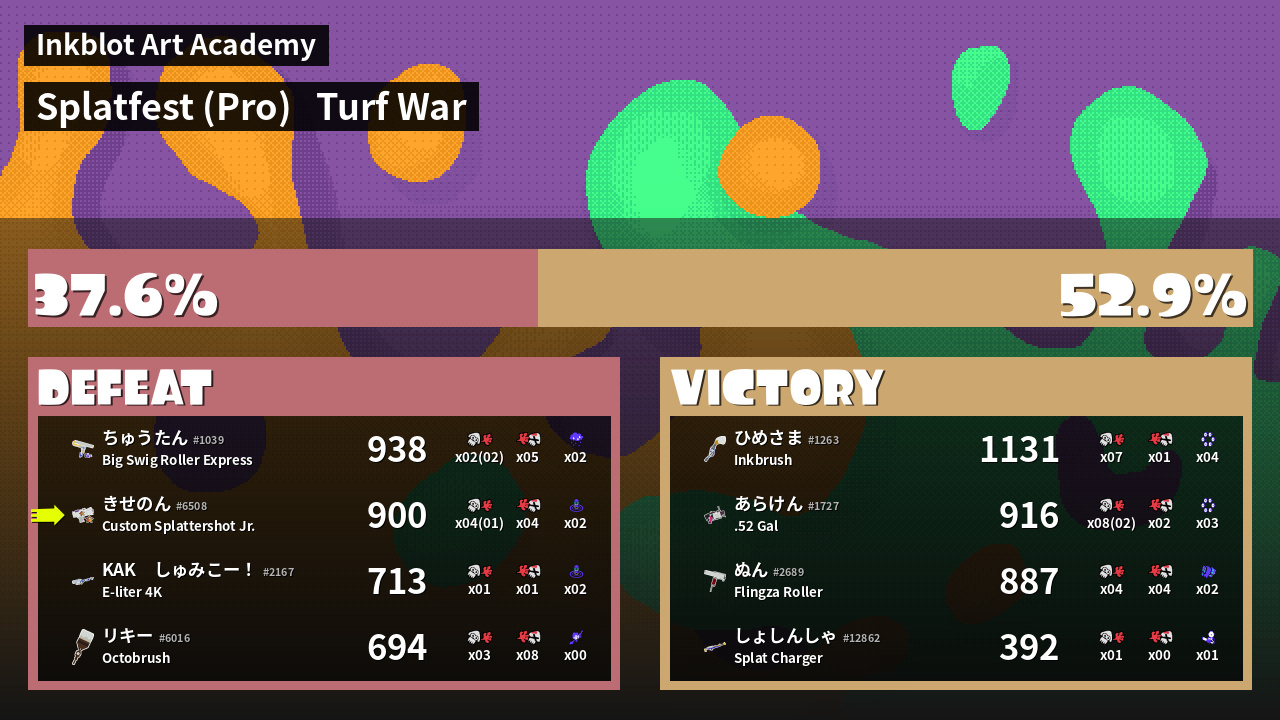 | Medals | #1 Overall Splatter #1 Popular Target #1 Home-Base Inker | ||