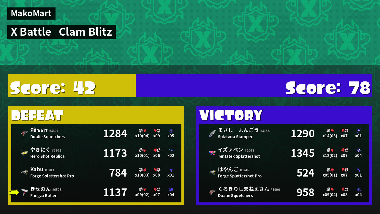 | Mode | Clam Blitz - X Battle | ||