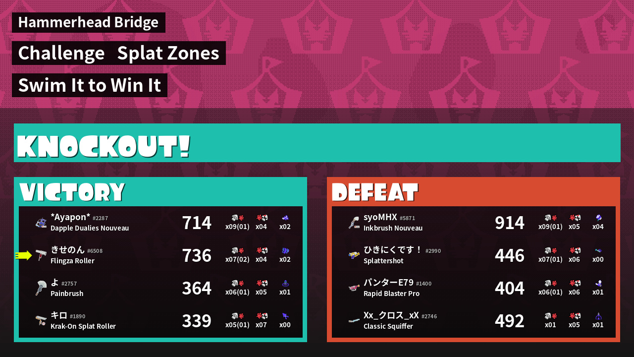 | Medals | #1 Splat Zone Inker #1 Turf Inker #1 Splat Assister | ||