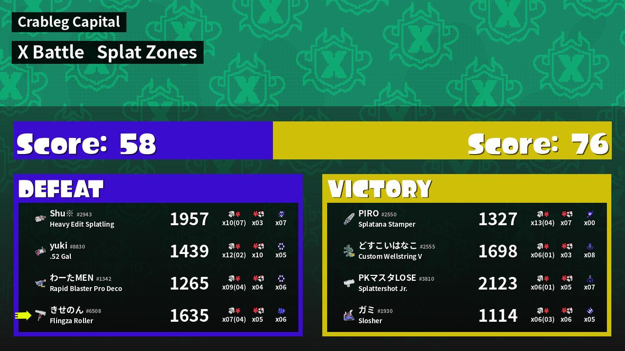 | Mode | Splat Zones - X Battle | ||