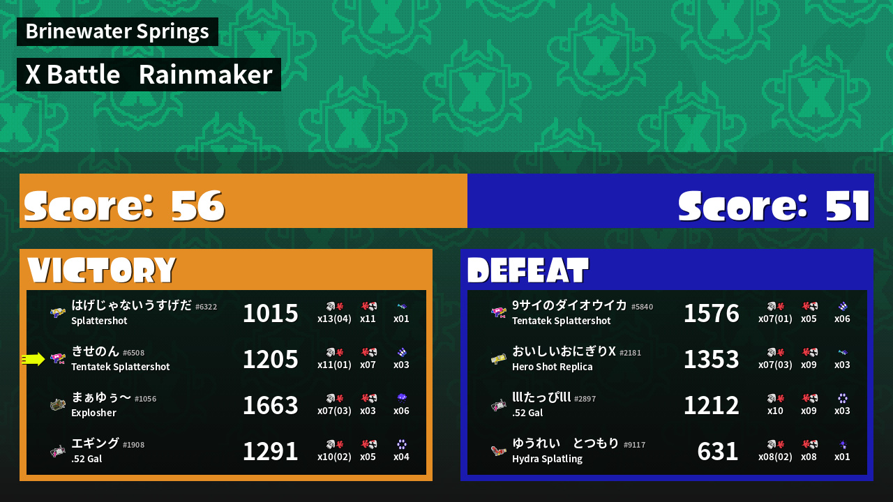 | Weapon | Tentatek Splattershot ( Splat Bomb / Triple Inkstrike) | ||