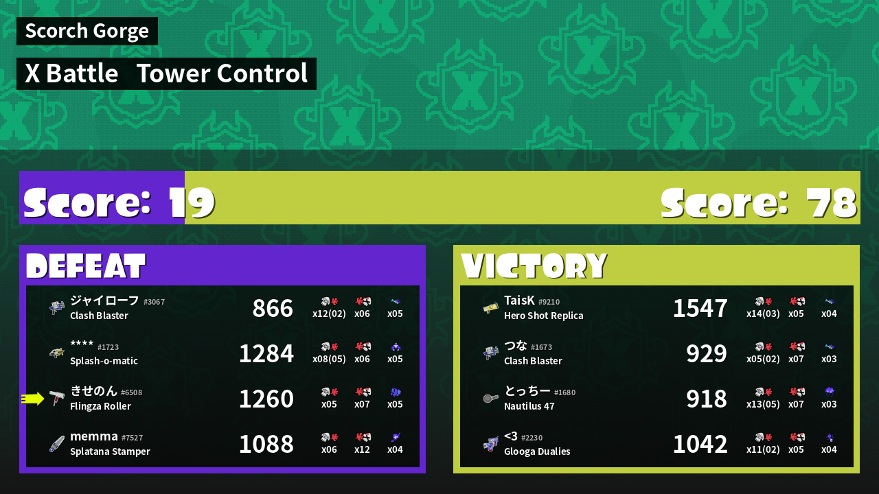 | Mode | Tower Control - X Battle | ||