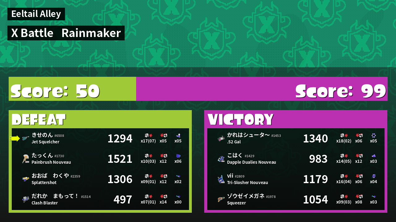 | Medals | #1 Overall Splatter #1 Super Jump Spot #1 Enemy Splatter | ||