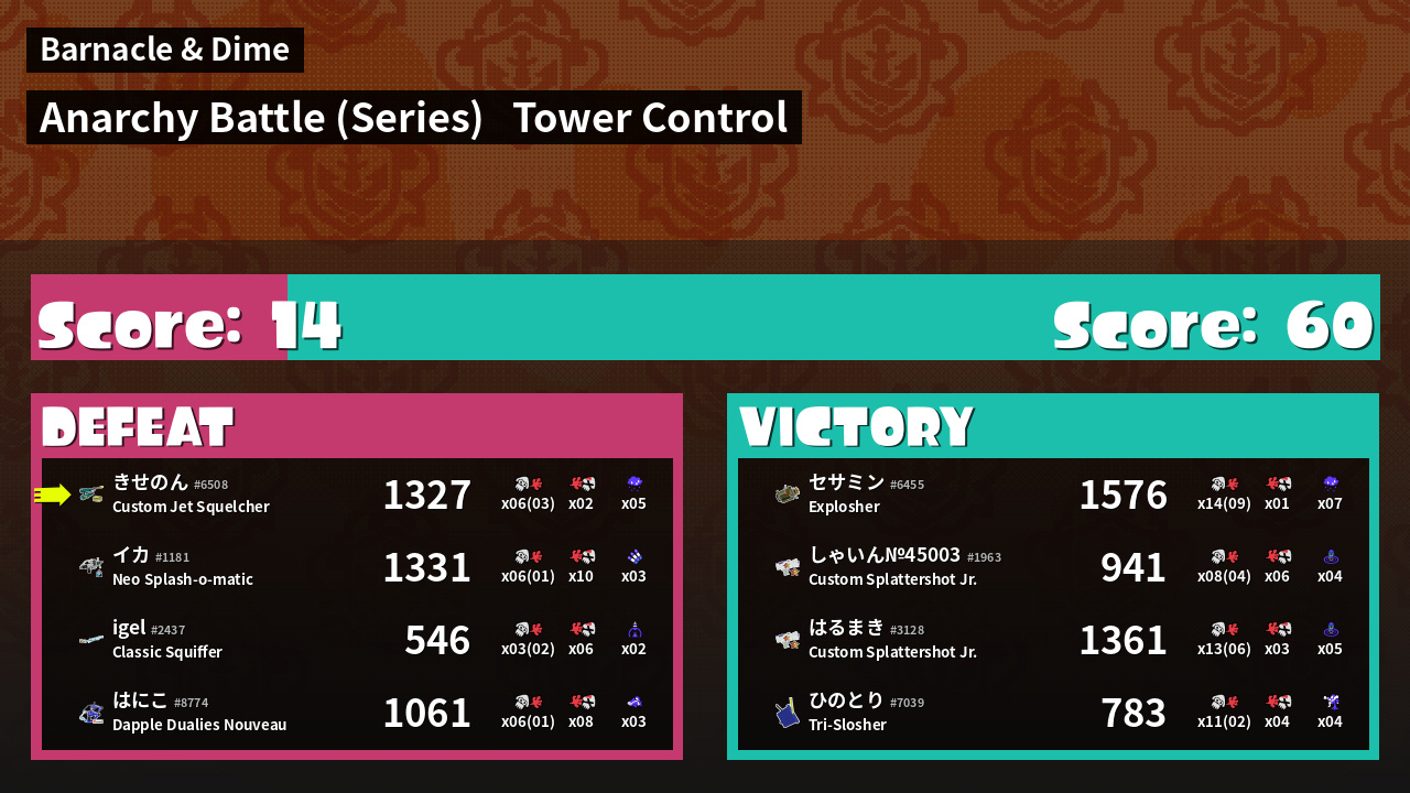 | Mode | Tower Control - Anarchy Battle (Series) | ||