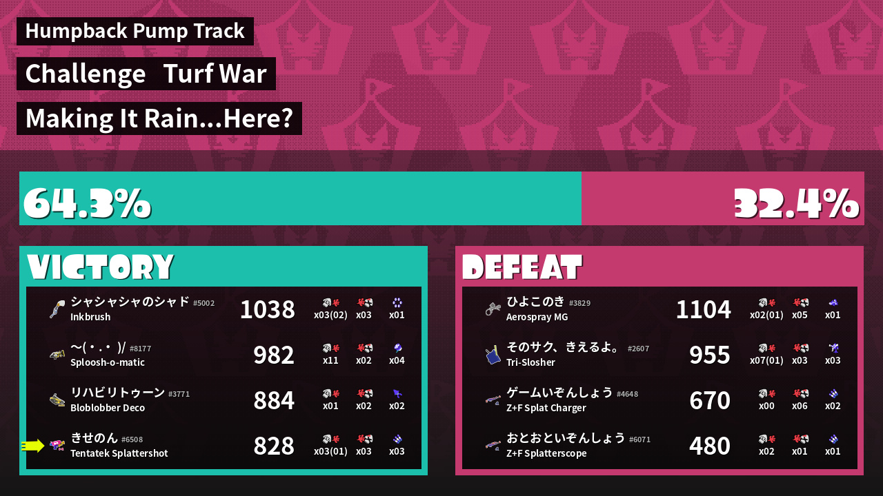 | Medals | #2 Overall Splatter #2 Popular Target #2 Home-Base Inker | ||