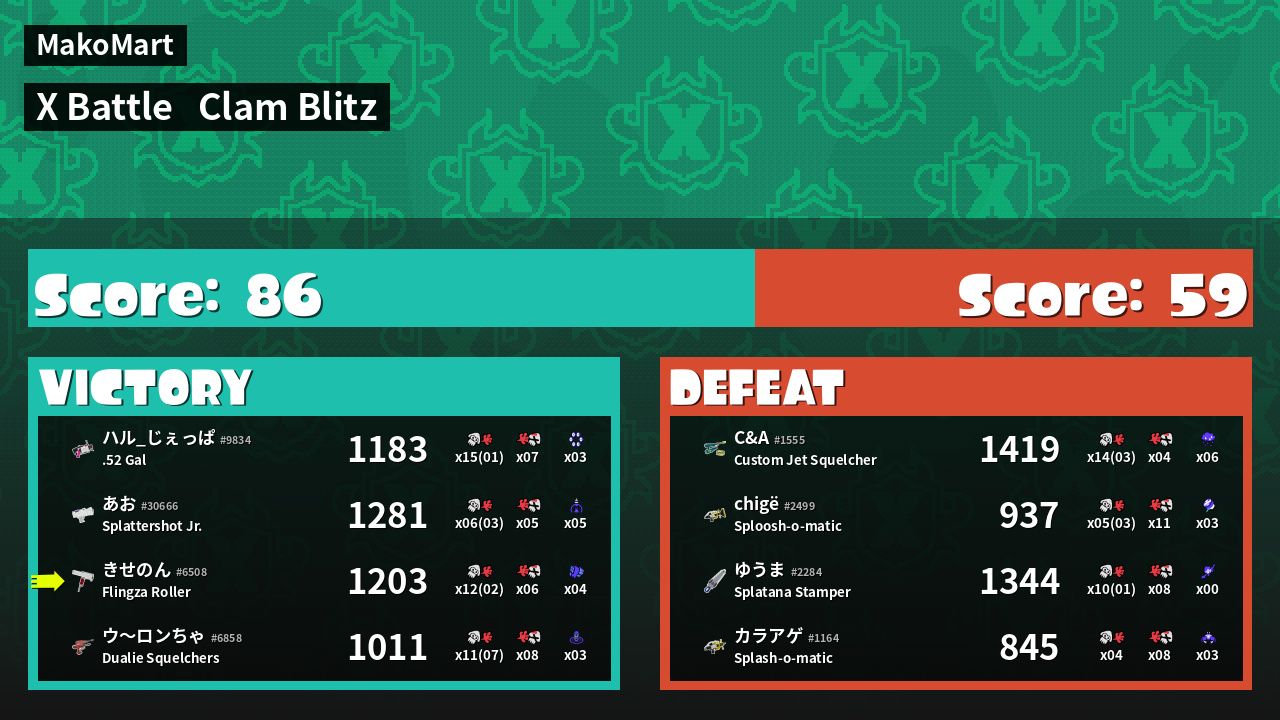 | Mode | Clam Blitz - X Battle | ||