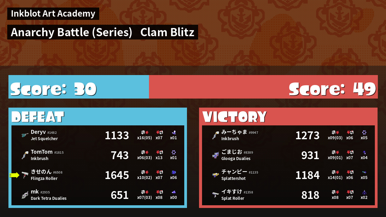| Mode | Clam Blitz - Anarchy Battle (Series) | ||