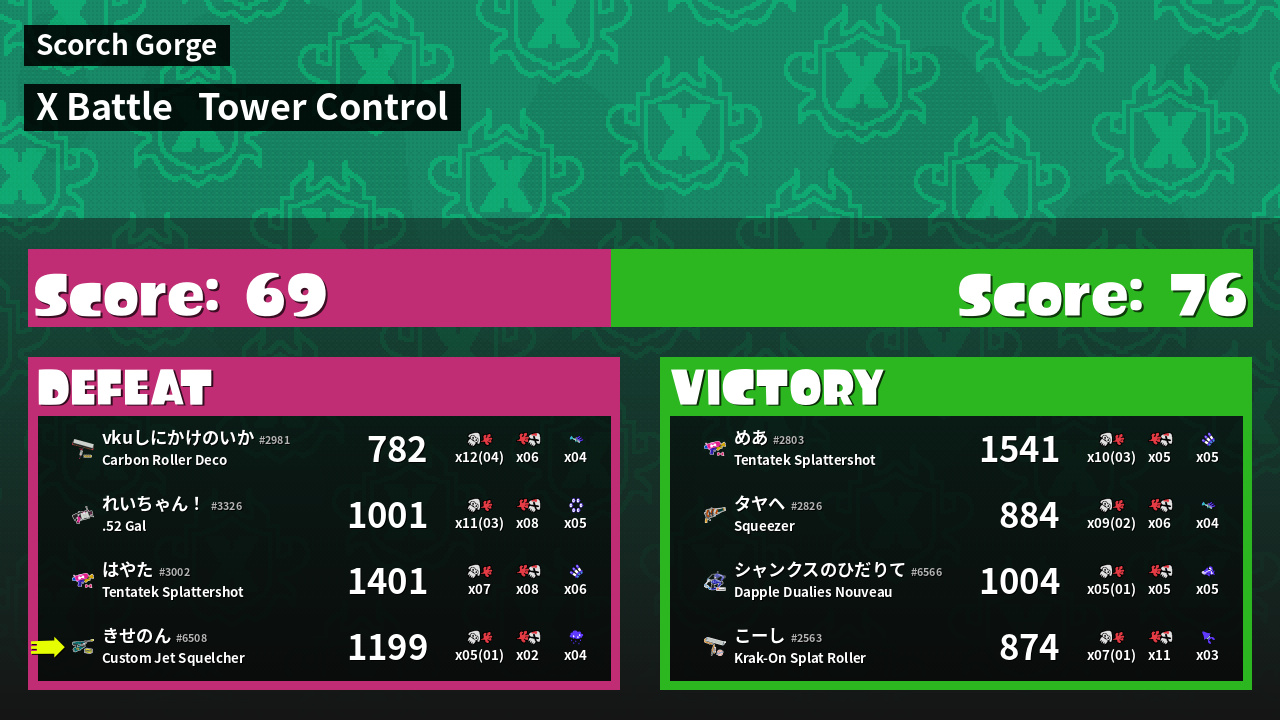 | Mode | Tower Control - X Battle | ||