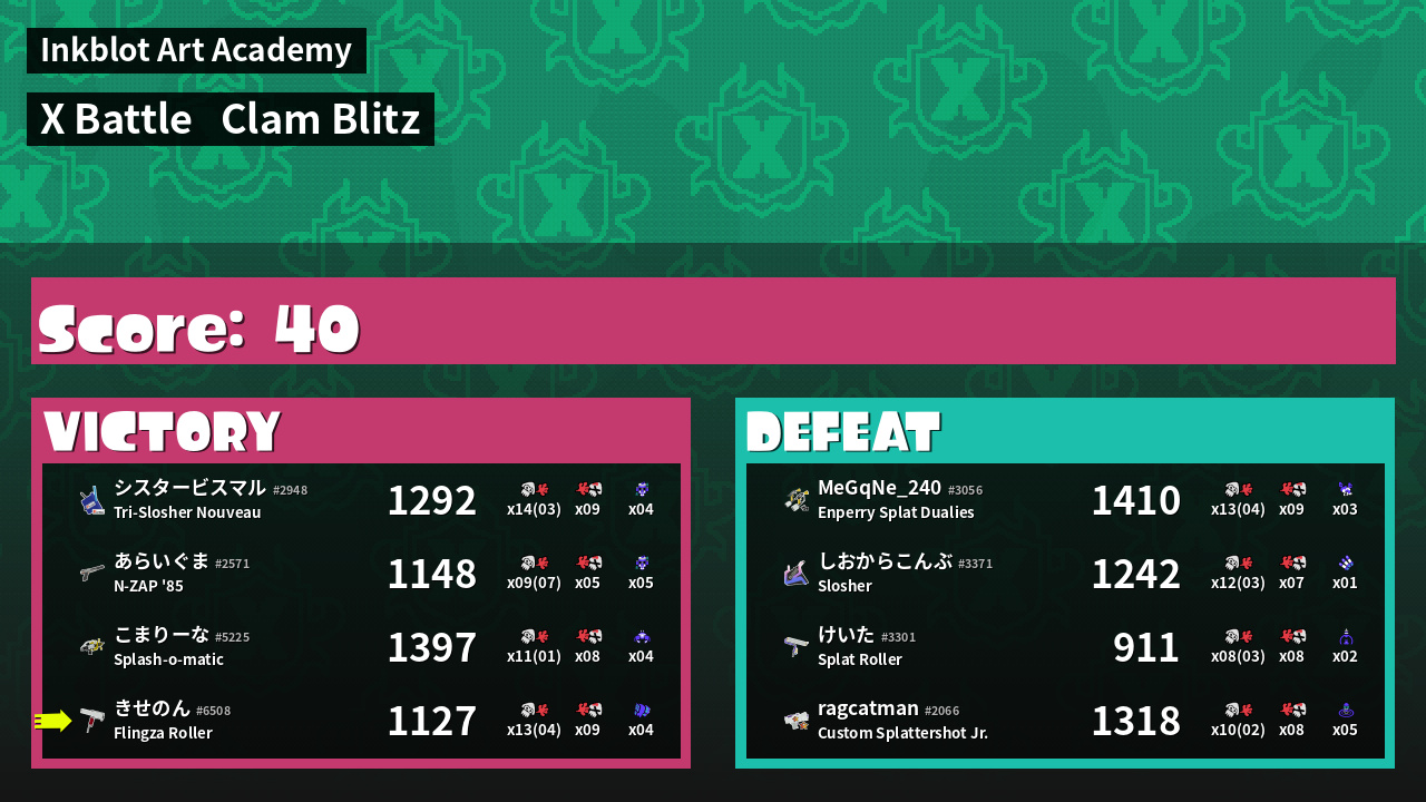 | Mode | Clam Blitz - X Battle | ||