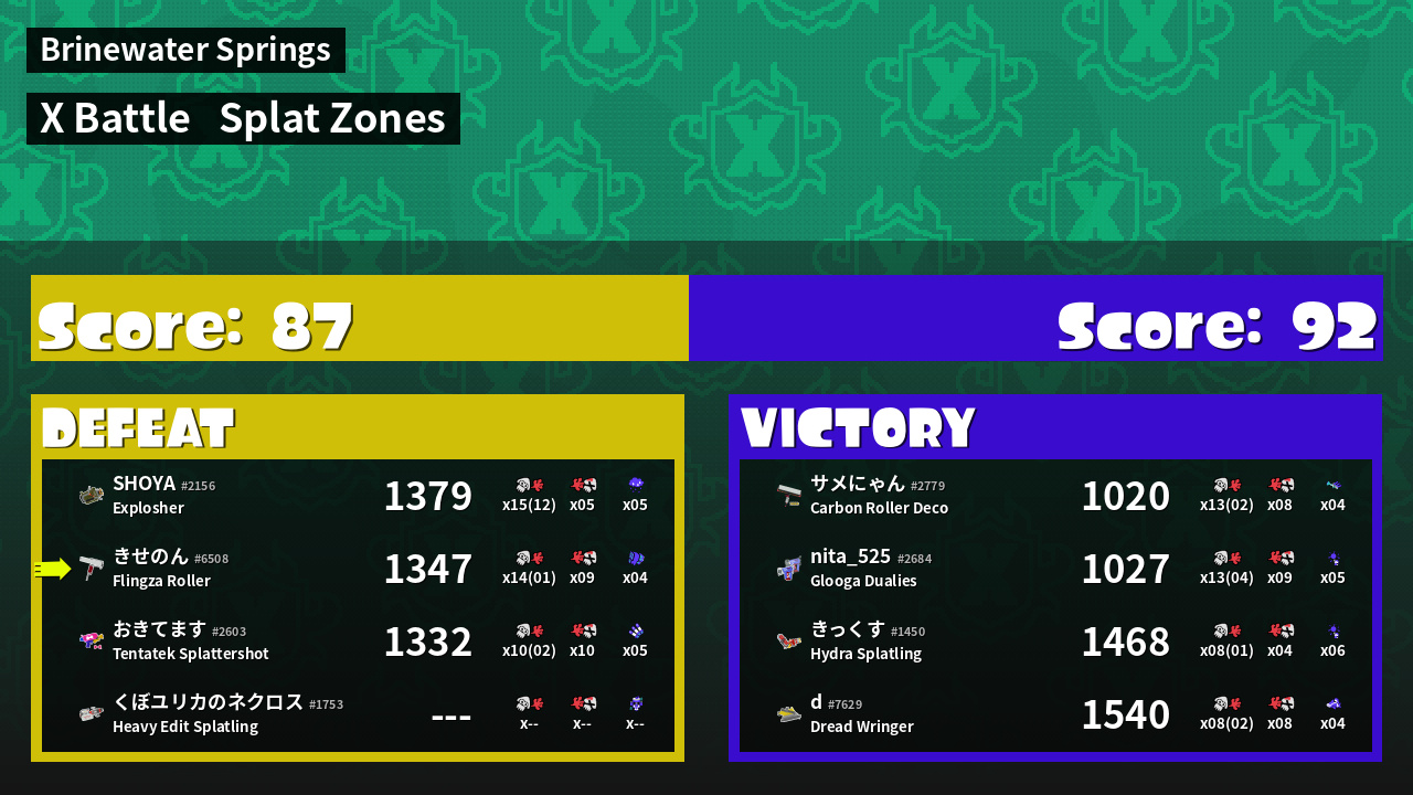 | Medals | #1 Splat Zone Guard #1 Popular Target #1 Enemy Splatter | ||