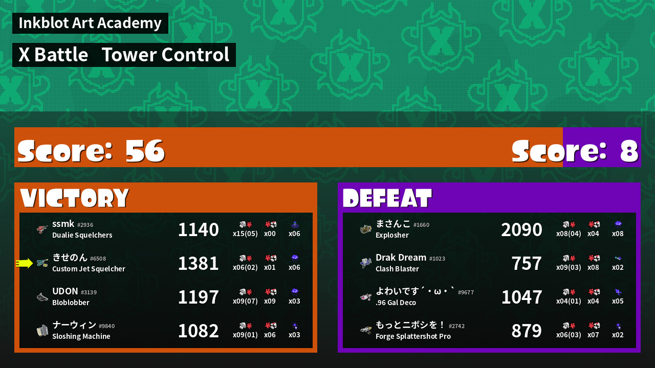 | Mode | Tower Control - X Battle | ||