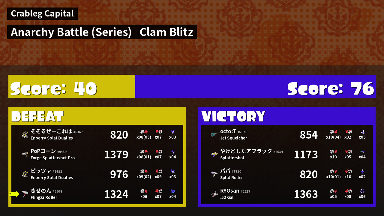 | Mode | Clam Blitz - Anarchy Battle (Series) | ||
