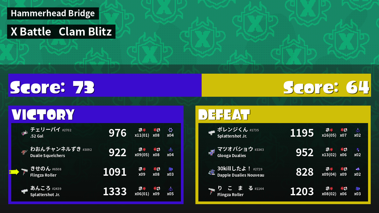 | Medals | #1 Super Jump Spot #1 Tenta Missiles User #2 Overall Splatter | ||