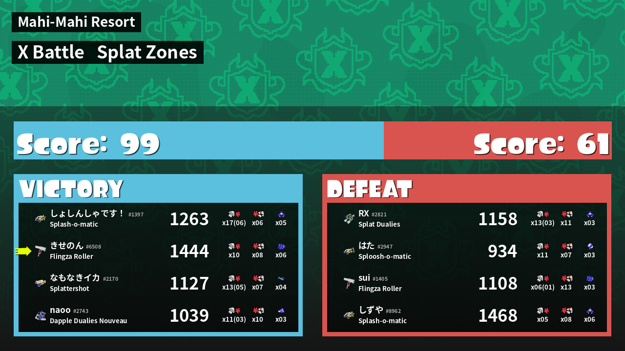 | Medals | #1 Splat Zone Inker #1 Turf Inker #1 Tenta Missiles User | ||