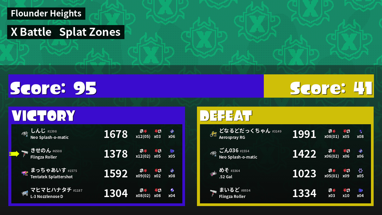 | Mode | Splat Zones - X Battle | ||