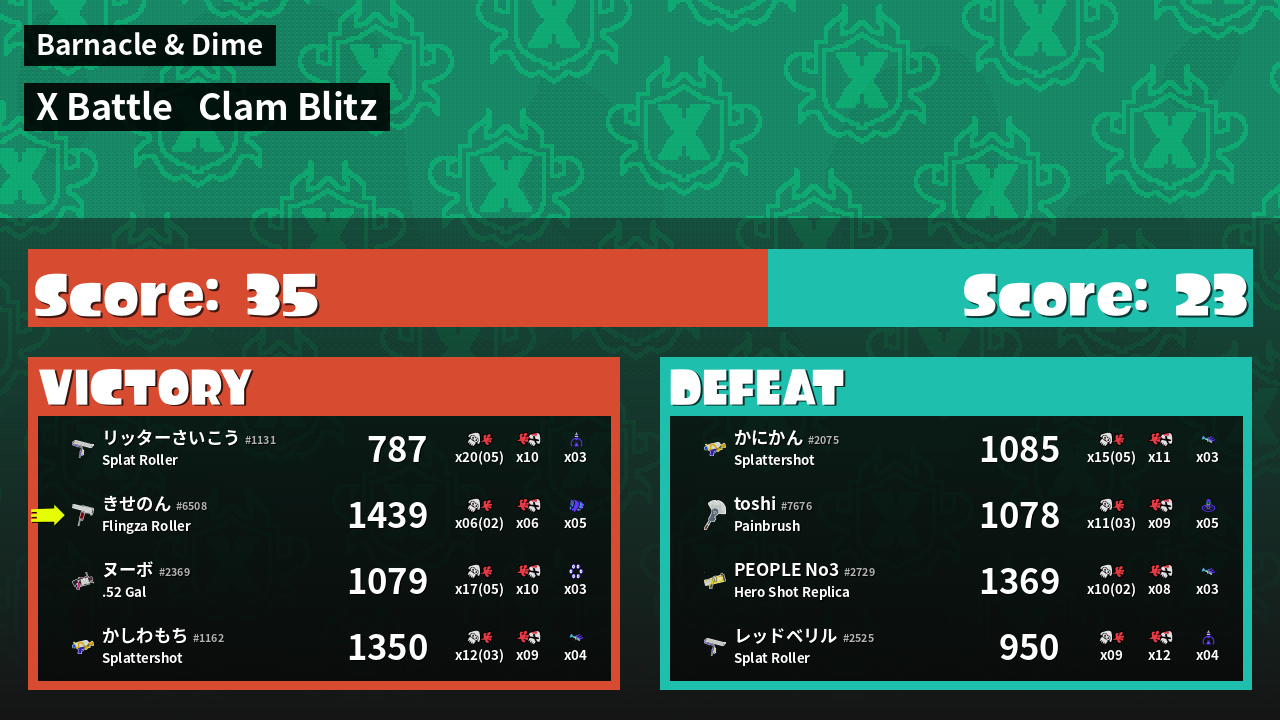 | Weapon | Flingza Roller ( Ink Mine / Tenta Missiles) | ||