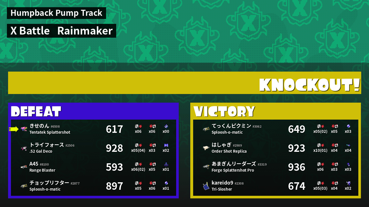 | Weapon | Tentatek Splattershot ( Splat Bomb / Triple Inkstrike) | ||