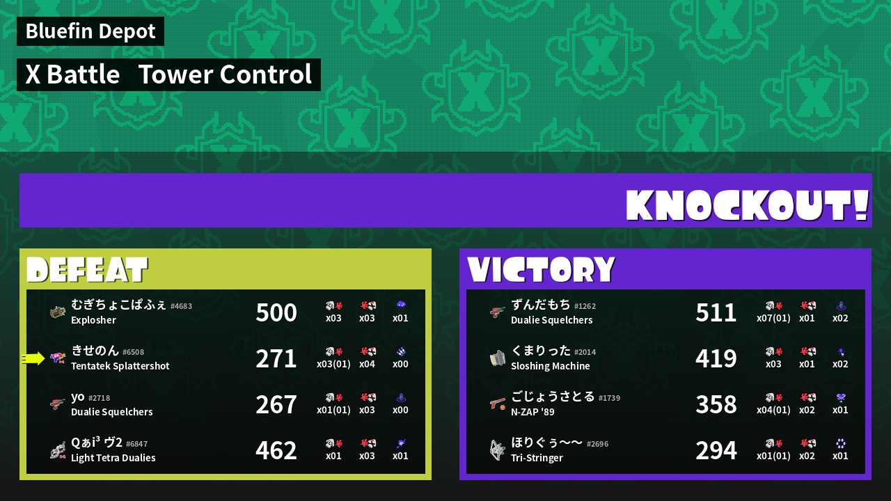 | Weapon | Tentatek Splattershot ( Splat Bomb / Triple Inkstrike) | ||