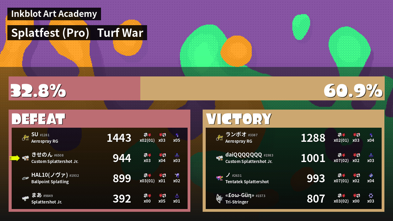 | Medals | #1 Overall Splatter #1 Home-Base Inker #1 Super Jump Spot | ||