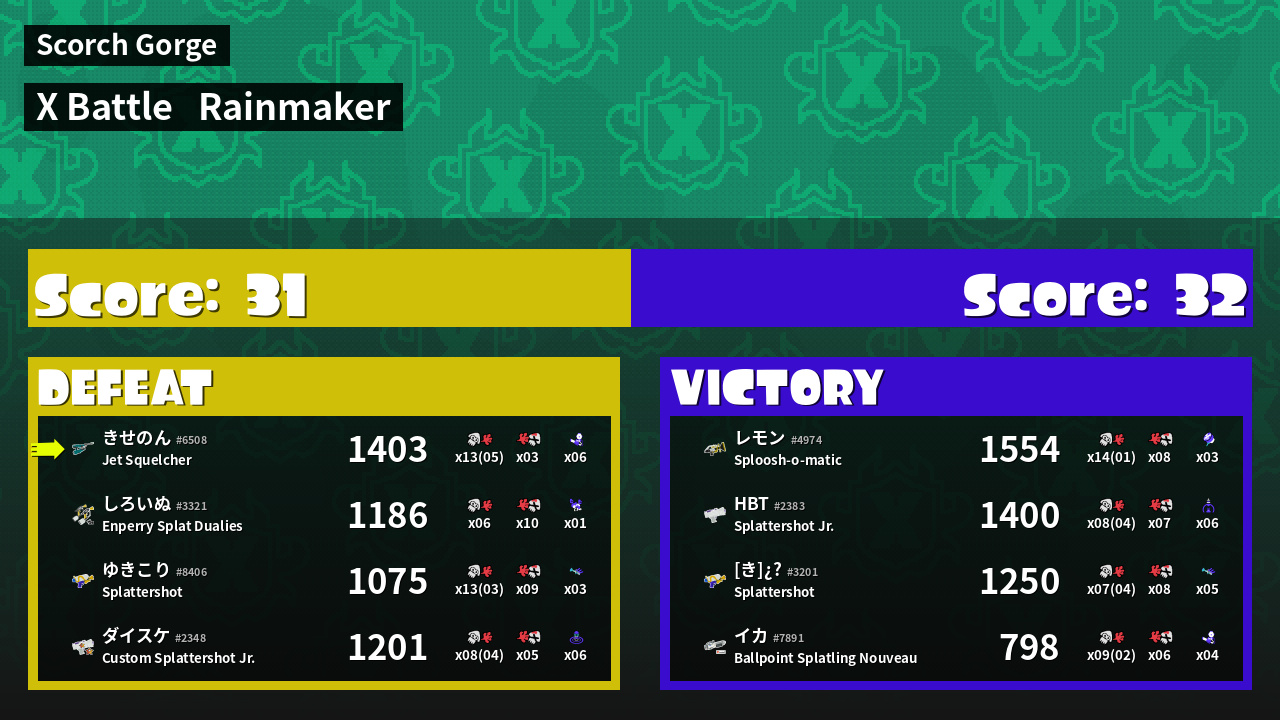 | Mode | Rainmaker - X Battle | ||