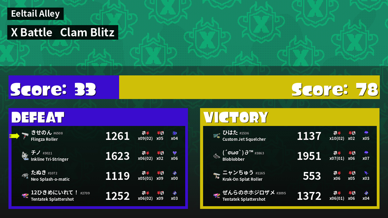 | Mode | Clam Blitz - X Battle | ||