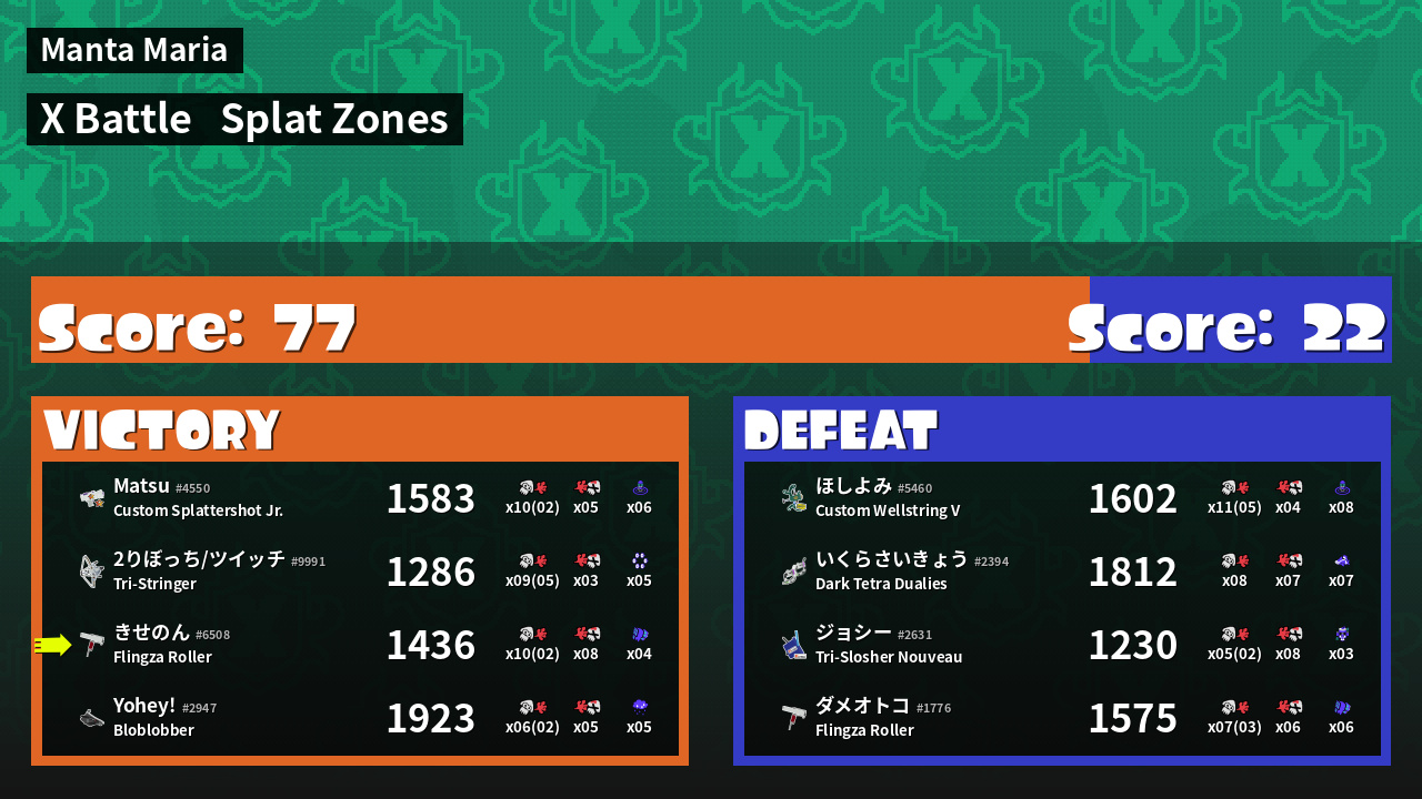 | Mode | Splat Zones - X Battle | ||