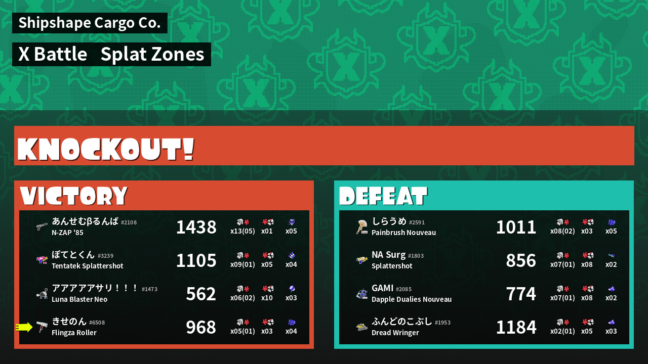| Medals | #1 Ground Traveler #1 Tenta Missiles User #2 Splat Zone Guard | ||