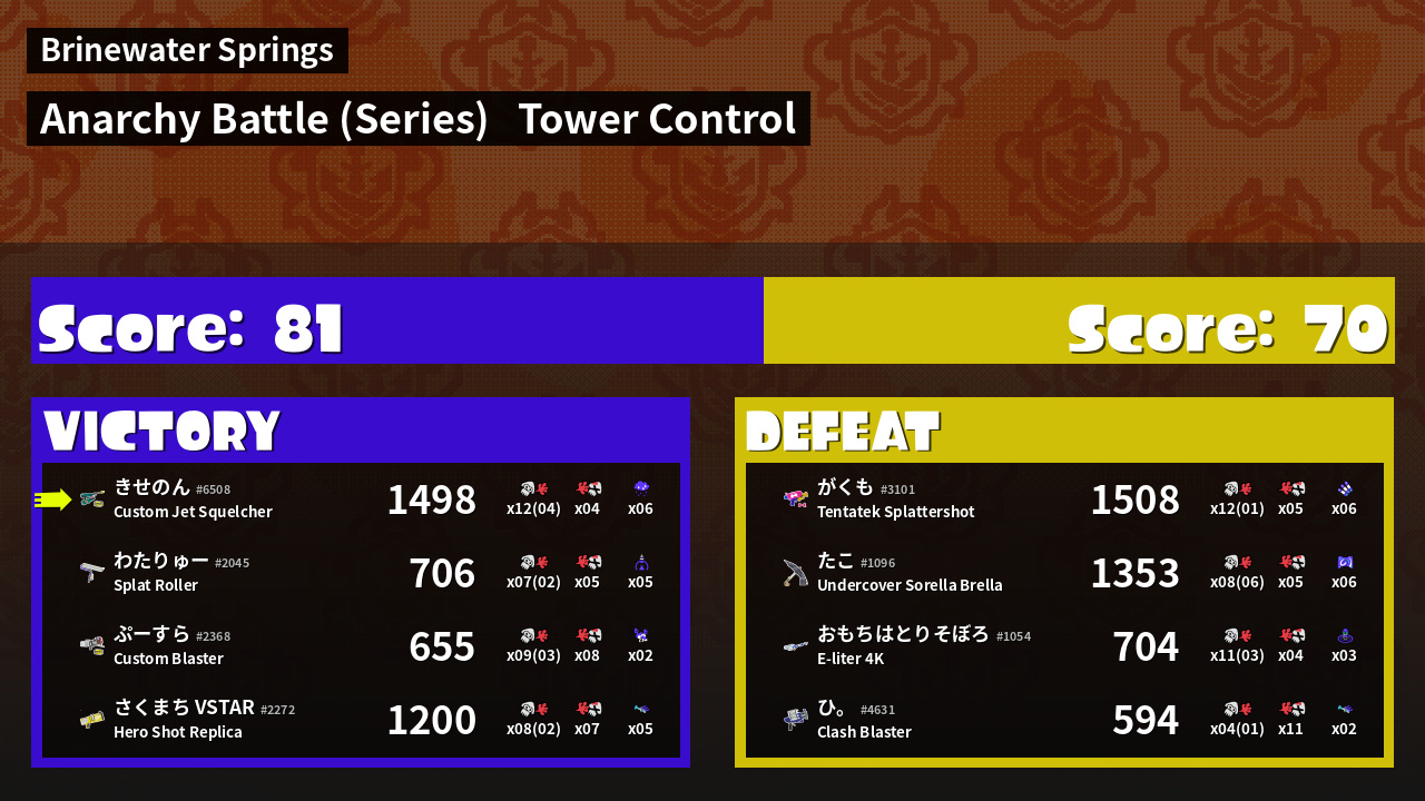 | Mode | Tower Control - Anarchy Battle (Series) | ||