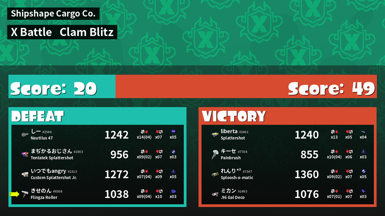 | Weapon | Flingza Roller ( Ink Mine / Tenta Missiles) | ||