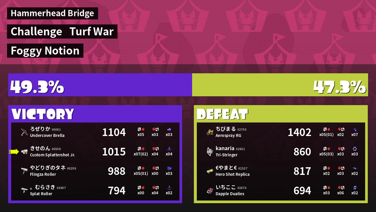 | Medals | #1 Overall Splatter #1 Popular Target #1 Home-Base Inker | ||