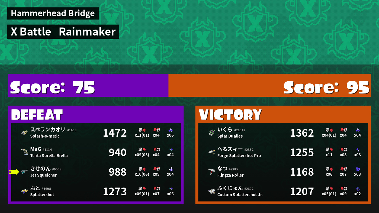 | Medals | #1 Popular Target #1 Splat Assister #1 Checkpoint Breaker | ||