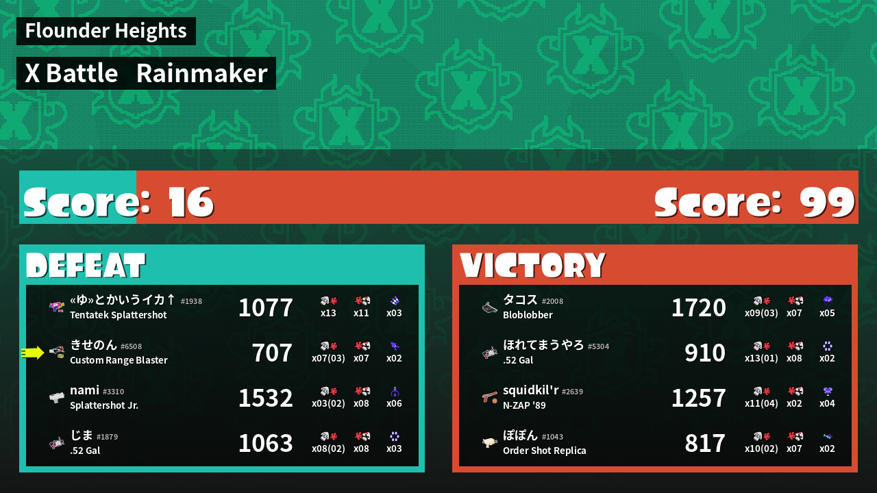 | Weapon | Custom Range Blaster ( Splat Bomb / Kraken Royale) | ||