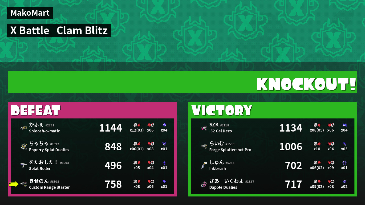 | Mode | Clam Blitz - X Battle | ||