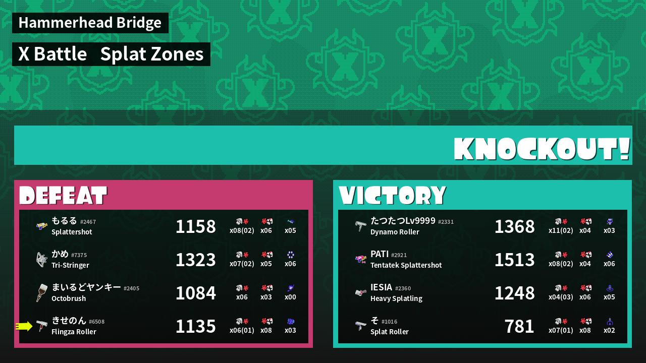 | Mode | Splat Zones - X Battle | ||
