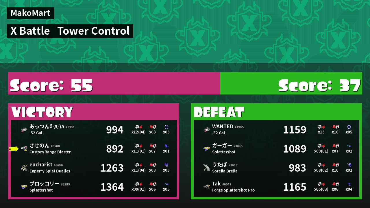 | Mode | Tower Control - X Battle | ||