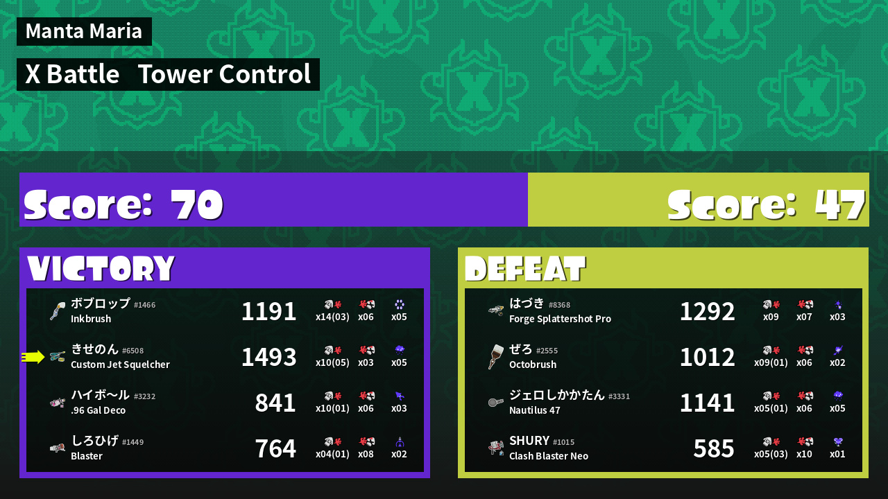 | Medals | #1 Turf Inker #1 Splat Assister #1 Ink Storm User | ||