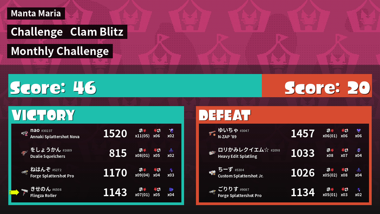 | Medals | #1 Clam Stopper #1 Tenta Missiles User #2 Enemy Splatter | ||