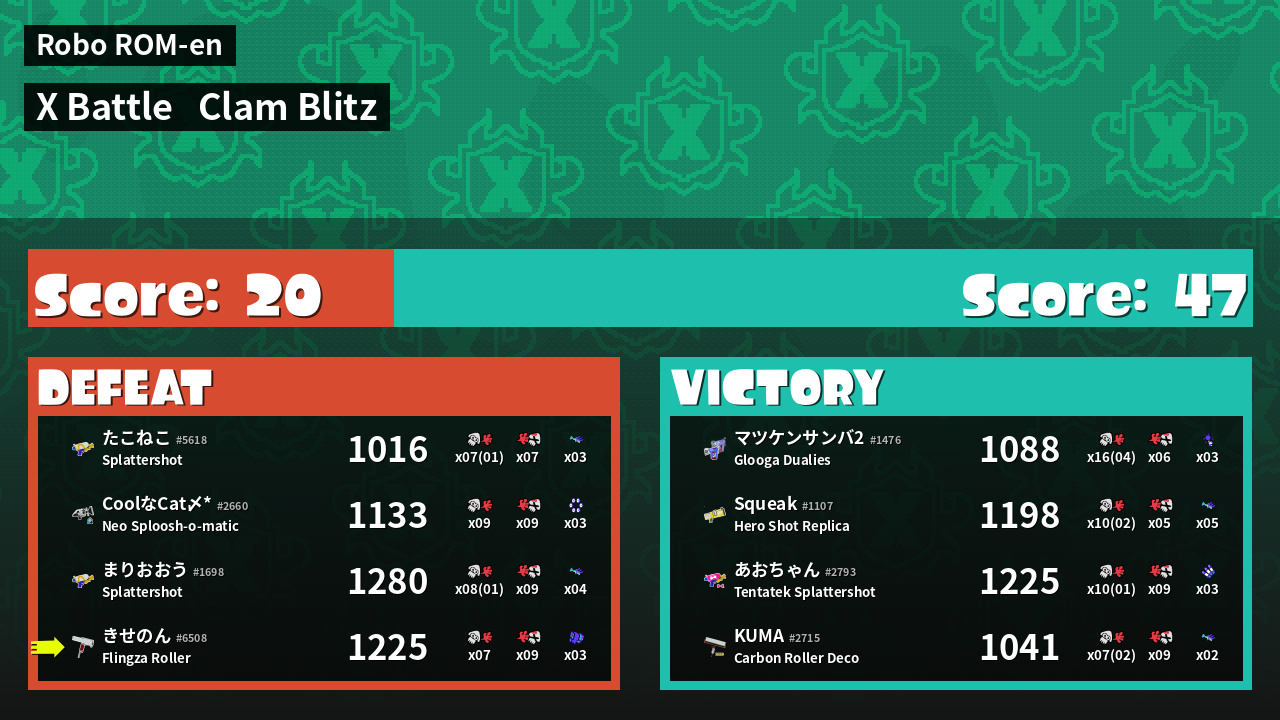 | Weapon | Flingza Roller ( Ink Mine / Tenta Missiles) | ||